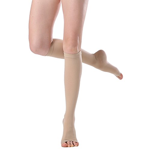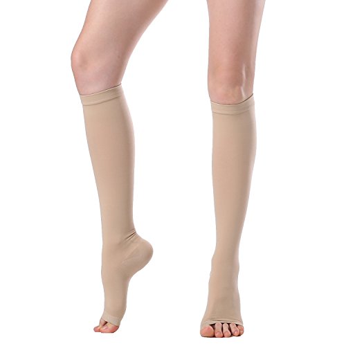 - ENJOY THE MOMENTS: 20-30 mmHg Open Toe Knee High Compression Socks elaborated to enhance your daily performance, no more tired or fatigued legs! Reduces swelling, leg pain, numbness and circulatory problems. Graduated stocking for women and men so everyone can benefit from wearing them. Recommended in helping and preventing varicose veins, shin splints and post-surgical treatments.