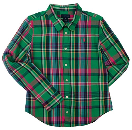 Plaid pattern; Button-down point collar; Applied button placket; Long sleeves with buttoned barrel cuffs; Ralph Lauren's signature embroidered pony accents left chest; %100 Cotton