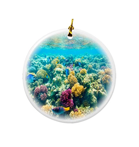 Rikki Knight Tropical Fish in Tank Design Round Porcelain Two-Sided Christmas Ornaments