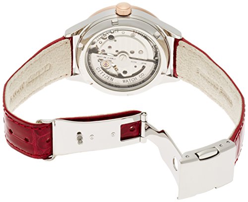 【 시티즌 콜렉션 메카니칼 워치 】중의 기계 부분이 보이는 프론트 스켈리턴 다이얼을 채용하고, 치밀하게 시를 잘게 써는 움직임을 즐길 수 있다디자인입니다.스와로브스키를 사용한 화려한 다이얼로,여성에게도 친숙함 보기 쉬운 부드러움을 의식했습니다.뒤 돼지는 시 스루(see through) 백 사양이 되고 있습니다.●구동 방식:메카니칼 오토매틱(손으로 맒부)●구동 시간:최대권 인상 시 약40시간 지속●석수:21석●10기압 방수●시 스루(see through) 백●푸쉬 나카도메 푸쉬 버튼을이란 엇갈림,손톱에게 있어 모아 두기 어려워 다루기 쉬운 나카도메입니다.●야광(바늘)●문자판:11포인트 스와로브스키 들어감 / ■컬러:문자판 골드계,케이스 실버계,밴드 레드계■정밀도:일(날) 차이+40초~-20초■케이스:스테인레스■표면 처리:일부 핑크 골드 도금■유리:사파이어 유리■밴드:악어■크기:직경 약34mm(## 소용돌이 제외한다)■밴드폭:16.0mm■나카도메:3《즈》부러짐 푸쉬타입 /