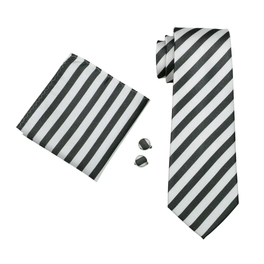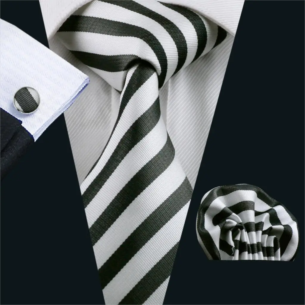 | [해외]FA-320 남성 넥타이 화이트 스트라이프 실크 자카드 직물 클래식 넥타이 손수건 커프스 세트 남성 비즈니스 웨딩 파티 무료 배송 |