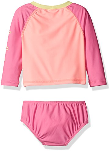 Long sleeve infant rash guard top with front pocket and surfer girl phrase on sleeve