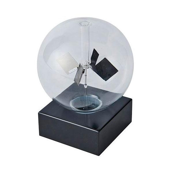 光熱に照らされるとガラス内の4枚の羽が回転します。窓辺に置けば太陽光で、室内にあれば白熱灯などに反応して回転し続けます。光の強弱に比例して、回転する速度が変化します。 |