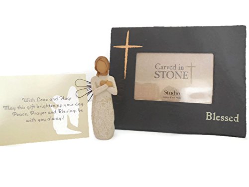 Willow Tree Remembrance Angel Figurine Bundle With DEMDACO Blessed Frame, An Ideal Sympathy-Condolence Gifts For Loss Of Mother/Father/Loved One