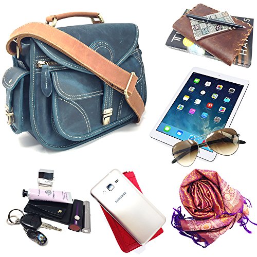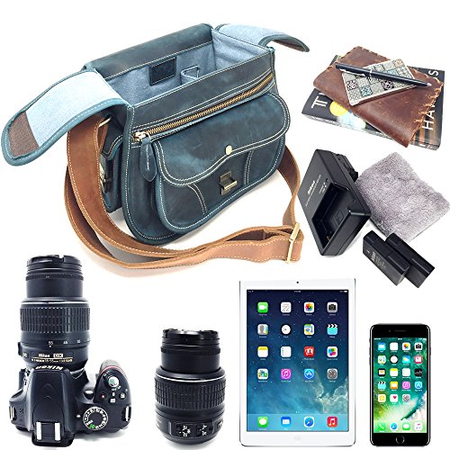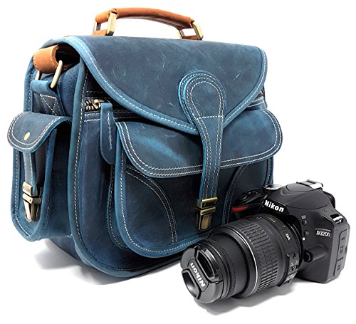 Purple Relic: Vintage Leather Compact DSLR Camera Bag; Crossbody; Fits DSLR with Lens for Nikon D3200, Canon 1200D, Sony A7;