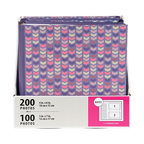 DesignOvation Pink and Purple Chevron Photo Album, Holds 200 4x6 Photos, Set of 4