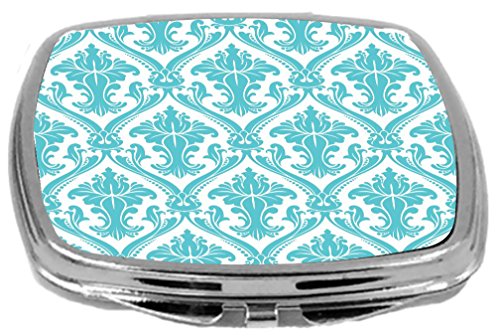 Rikki Knight Compact Mirror, Light Blue Damask, 3 Ounce