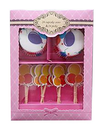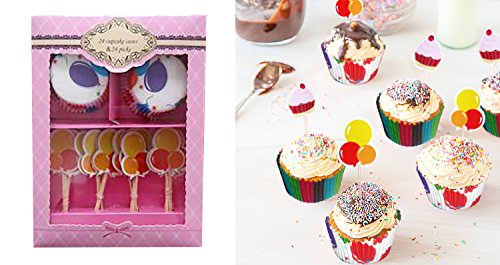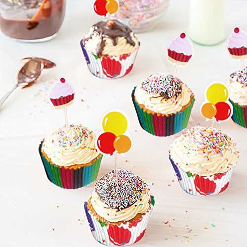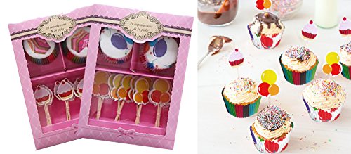 Decor Hut Cupcake Liners with Matching Cake Toppers in Gift Box! Party Decorations, Baking Fun for Kids, Fun Designs! Bright Colors!