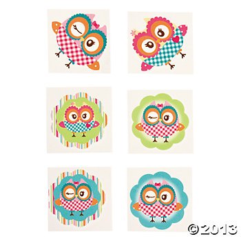 -. Title : Owl Party Temporary Tattoos - 72 pcs