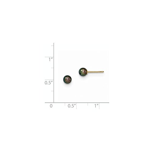 Solid 14k Yellow Gold 4-5mm Black Round FW Cultured Pearl Stud Earrings