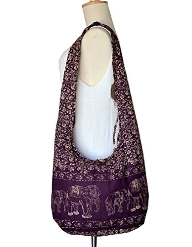 -. Title : Unisex Cross Body Shoulder Bag, Hippie, Gypsy Sling, Hobo, Monk, Alms, Beach Burgundy Elephant Design