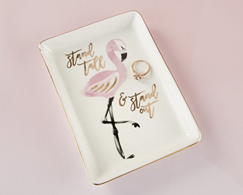 Kate Aspen 23165NA Flamingo Trinket Dish, Pink, White and Gold