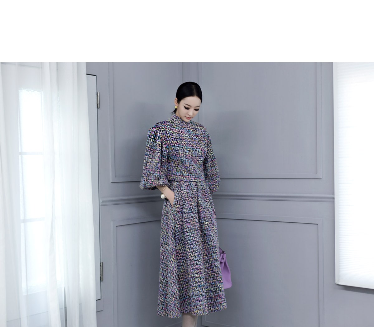 B2152 프랑 트위드 블라우스 Purple mix