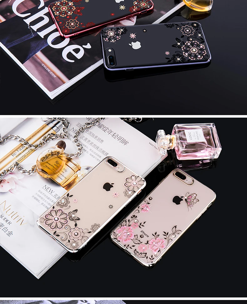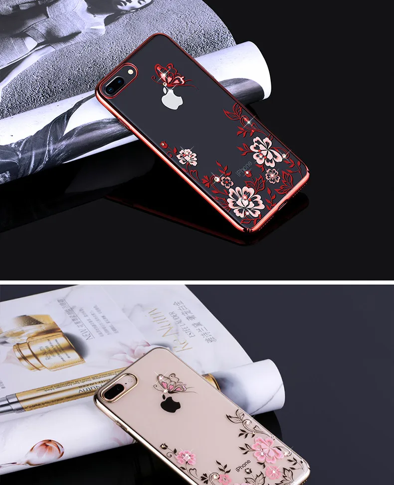 Features:Plated PC Butterfly Flower Swarovski Element Crystal Diamond Case