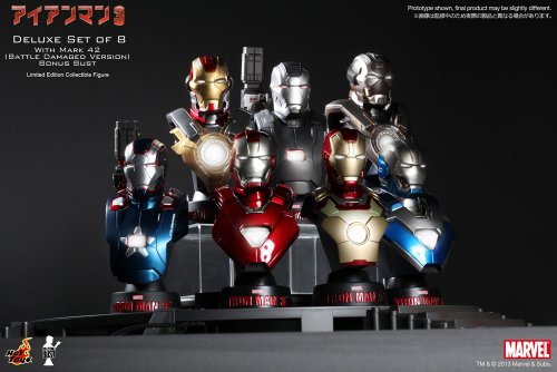 ■サイズ:全高約120mm ■スケール:1/6スケール ■スペシャル機能:ライトアップ機能 ■バスト7種+ボーナスバスト1種 ■セット内容:アイアンマン・マーク42/マーク17(ハートブレイカー)/マーク24(タンク)/マーク30(ブルー・スティール)/マーク33(シルバー・センチュリオン)/アイアン・パトリオット/ウォーマシン・マーク2/アイアンマン・マーク42(バトルダメージ版・ボーナスバスト) ※電池が切れた際の商品交換・電池交換の対応には応じかねます。あらかじめご了承下さい。Feature