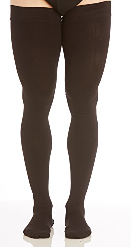 Men's Firm Support Thigh High with Grip Top Comfortable, gradient compression designed specifically for a man. These new thigh highs look and feel like the leading name brands but are significantly discounted. Made in USA out of 75% Microfiber Nylon & 25% Lycra/Spandex with Silicone Dotted Band, sold per pair.