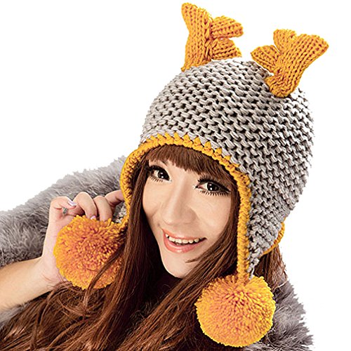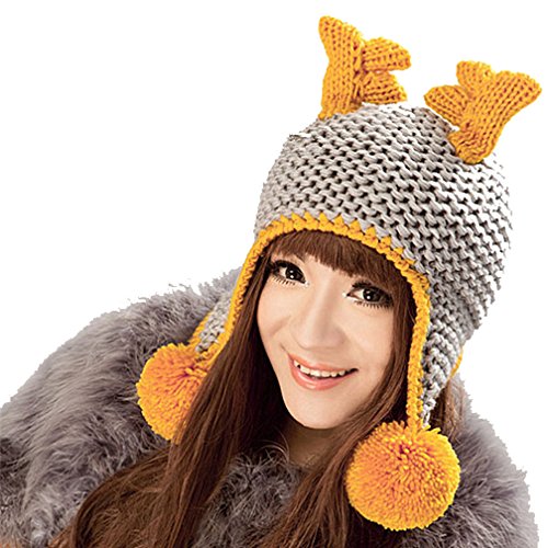 (ALLDECOR)/Accessories/Hats/DIRECT FROM USA/ALLDECOR Lovely Antlers Beanie Women Winter 100% Handmade Knitted Deer Horn Hat