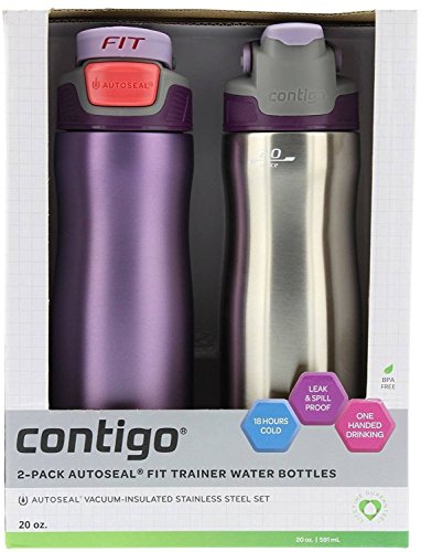 - Contigo Autoseal Fit Trainer Water Bottles, 20oz - Stainless Steel & Spring Purple (2 Pack)