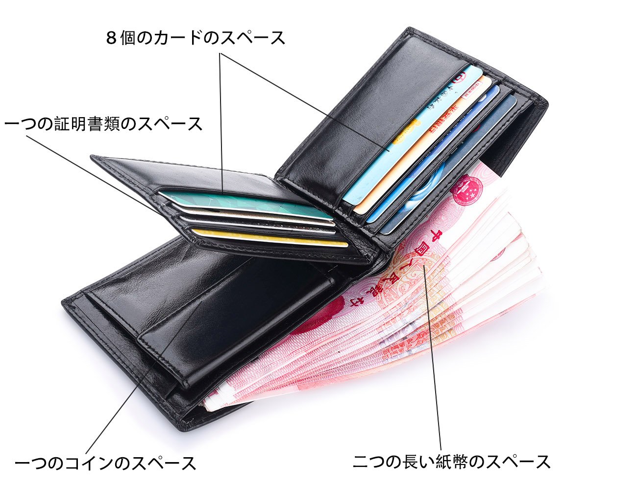 Genuine leather large capacity double fold wallet