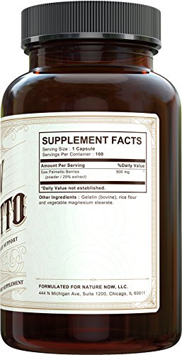 -. Feature : GET RESULTS OR YOUR MONEY BACK! When taken as directed, our Saw Palmetto is guaranteed to give you the benefits of a healthy prostate and hormone production throughout the day or we will give your money back! / #1 BEST SELLING SAW PALMETTO EXTRACT : Our formula contains an all natural premium blend of saw palmetto berries formulated by experts in modern nutritional science. As a result, you get to enjoy the benefits of a healthy prostate and hormone production. / STOP FRUSTRATING TRIPS TO THE BATHROOM : It's time to get more sleep and stop waking up several times every night, only to be frustrated by little output. Frequent urination is a very common problem for men as they age, but you don't have to accept it. / FIGHT HAIR LOSS BY BLOCKING DHT : Saw Palmetto Berries may block 5-alpha-reductase, an enzyme that converts testosterone to DHT. DHT is often cited as the main culP.R.It in male-pattern baldness, or genetic hair loss in both Men & Women. / NATURAL & SAFE : Our organic formula contains 500mg of 100% saw palmetto berries with no fillers and binders. Saw Palmetto Berries naturally contain several plant sterols, including beta sitosteroll, well-known for its role in supporting prostate health. All of our products at NatureNow are formulated in an FDA Registered and cGMP certified facility right here in the United States.