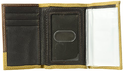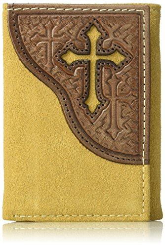 Studio : Nocona Publisher : Nocona Binding : Apparel Product Description This medium brown Nocona tri-fold wallet by medium and f western products has a natural body with a tan basket weave corner tab that features a cross cutout and 2 crosses embossed. Inside features multiple compartments for your credit cards, cash, and an id window. 0