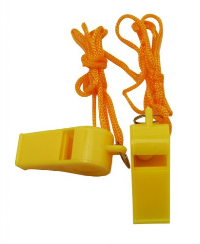 -. Title : Ailisi Yellow Plastic Whistle and Golden Lanyard Combo Pack of 15