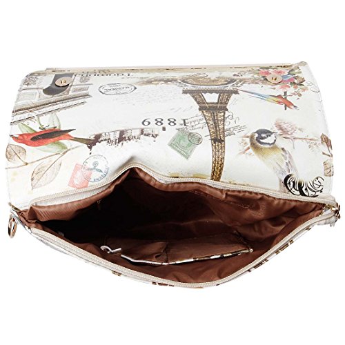 -. Brand : b.m.c -. Department : womens -. Feature : Bag Dimensions: 12.2 in (L) X 0.7 in (W) X 8.3 in (H). / Main compartment has interior lining. Features 2 open side pockets and 1 zippered side pocket. / Removable shoulder strap is adjustable up to about a 23 in. drop. / Max Opening: 7 in. / Closure: Magnetic snap button. -. Label : Bundle Monster -. Manufacturer : Bundle Monster -. NumberOfItems : 1 -. ProductGroup : Shoes -. ProductTypeName : HANDBAG -. Publisher : Bundle Monster -. Studio : Bundle Monster -. Title : BMC Womens Textured PU Leather Postage Stamp Design Print Fashion Clutch Handbag