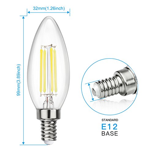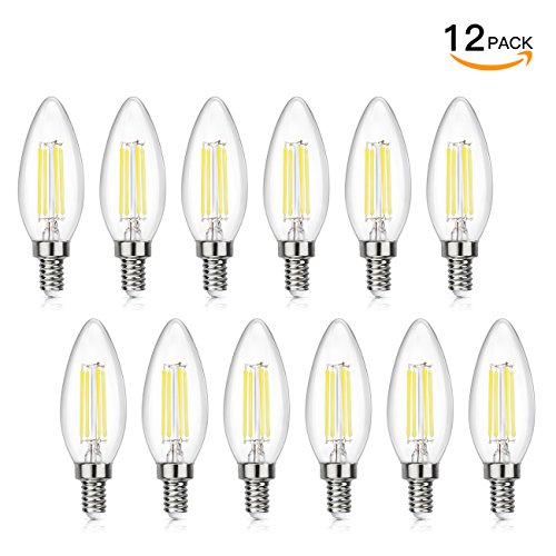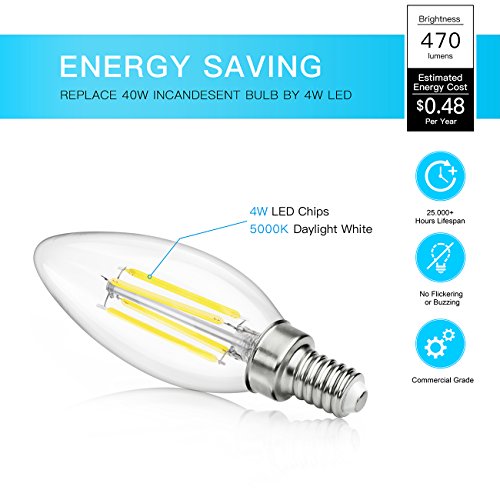 SHINE HAI Candelabra LED Filament Bulbs 40W Equivalent, 5000K Chandelier B11 LED Bulb E12 Base Decorative Candle Light Bulb, Pack of 12