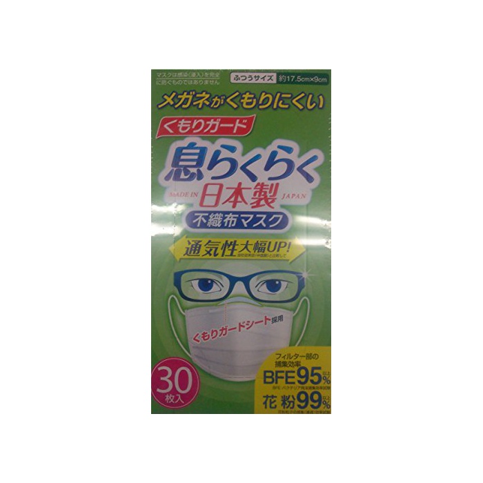 원본상품명: 小津産業 くもりガ?ド 息らくらく日本製 不織布マスク ふつうサイズ 30枚入