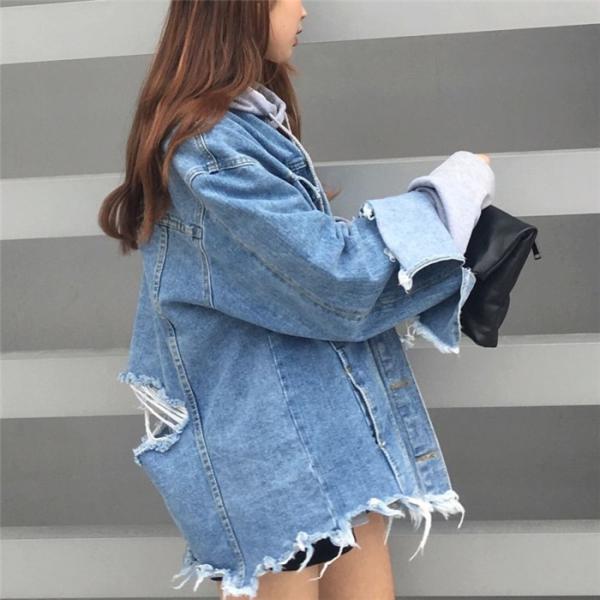 クラッシュダメージGジャン レディース アウター ジャケット デニム ジージャン 無地 大きい ビッグ フリンジ 長袖 2017 新作 ファッショントレンドのビッグシルエットに古着のようなこなれ感がおしゃれ!今年っぽいハードなダメージに、袖・裾のフリンジがクール★ゆるっとしたサイズ感で、スキニーパンツやタイトスカートなどコンパクトなボトムスに合わせてメリハリある着こなしに♪【サイズ】フリーサイズ着丈68/胸囲114/肩幅50/袖丈57(cm)※製品により多少の誤差が生じる場合がございます。【ご使用上の注意】着用に問題のない製法のほつれ、商品の性格上、開封された商品・一度でも着用されました商品の返品・交換は一切お受け致しません。イメージと違う、サイズが合わない等の理由での返品は一切受け付けておりません。購入後のサイズ交換は対応しておりません。生産終了後すぐ発送しているため匂いがある場合がございます。ご了承ください。【生産国】made in china※商品はご注文を頂いてから2週間前後の到着となります。