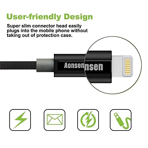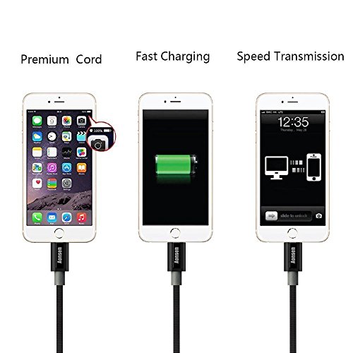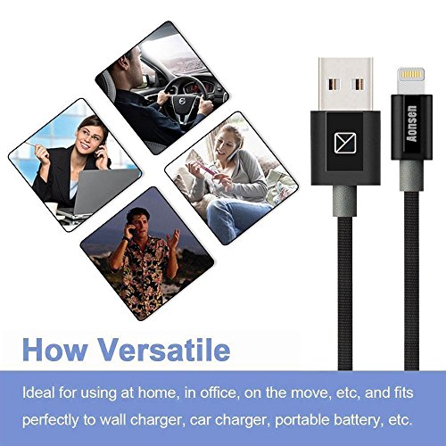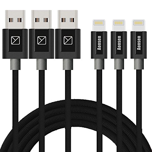 Aonsen iPhone Cable 3Pack 10FT Nylon Braided Certified Lightning to USB iPhone Charger Cord for iPhone 8 7 Plus 6S 6 SE 5S 5C 5, iPad 2 3 4 Mini Air Pro, iPod Nano 7 - Black