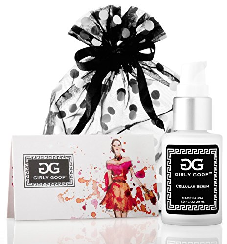 -. Feature : DELIVERS a potent combination of hyaluronic acid, caffeine, soluble collagen, soy protein, antioxidants, and vitamins A and E. / HELPS IMPROVE elasticity, texture, firmness. REGENERATING serum RESTORES your gorgeous glow. / DIMINISHES the appearance of fine lines and wrinkles. NATURALLY BALANCES moisture levels. / PROTECTS your beautiful face with lightweight creamy matte finish. / GIRLY GOOP is paraben-free, sulfate-free, phthalate-free, formaldehyde-free, gluten-free, and cruelty-free. Made in USA. Packaged in satin glass and GG signature polkadot bag with note card.
