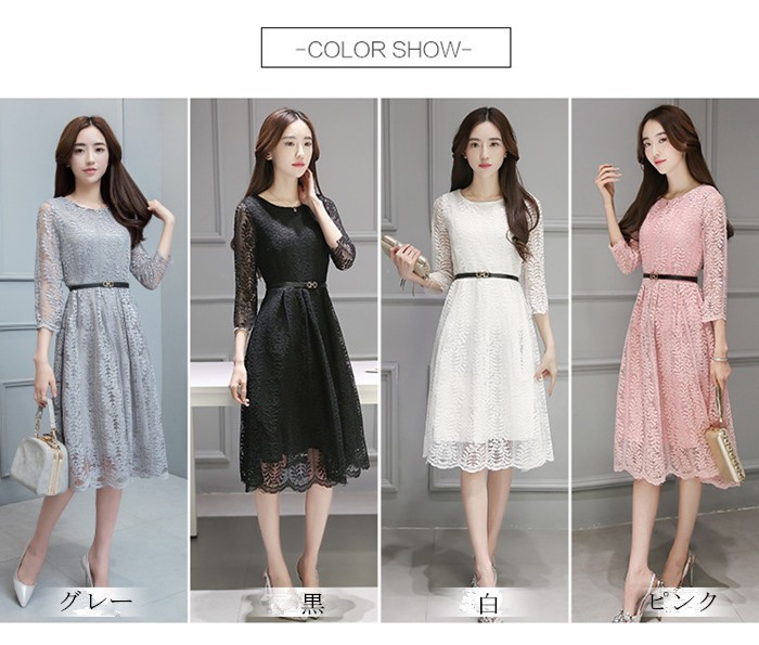 ●商品写真はできる限り実物の色に近づけるよう加工しておりますが、お客様が使用するパソコンのモニター設定や部屋の照明により多少、色の変化が感じられる場合がございます。●当商品は機械による生産の過程上、どうしても「生地を織る際の糸の継ぎ目」や多少の「ほつれ」、他繊維の「混紡」がございます。また、採寸方法により表記サイズと多少の誤差が生じる場合がございます。予めご理解くださいますよう、お願い申し上げます。生産国:中国★素材:レース+ポリエステル カラー:黒 白 ピンク グレーサイズ(CM):S:バスト74 ウエスト68 肩幅33 袖丈40 着丈95M:バスト78 ウエスト72 肩幅34 袖丈41 着丈96L:バスト82 ウエスト76 肩幅35 袖丈42 着丈97XL:バスト86 ウエスト80 肩幅36 袖丈43 着丈98