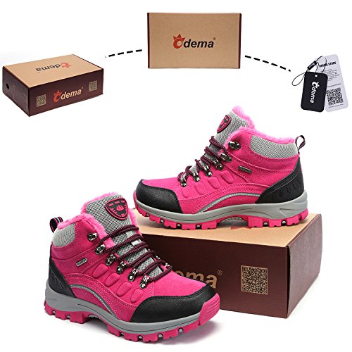 Binding : Apparel Product Description Odema is a USA registered fast-fashion brand,dedicated to offer comfortable and stylish daily-wear products.We believe life is to live like what you imagined.What you wear brings you inspiration of being yourself. Odema Women's Outdoor Trekking Hiking Sneakers Warm Fur Ankle Boots Model Number: 161102XZ0902C75Z1000 0