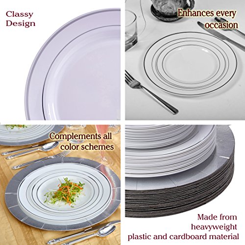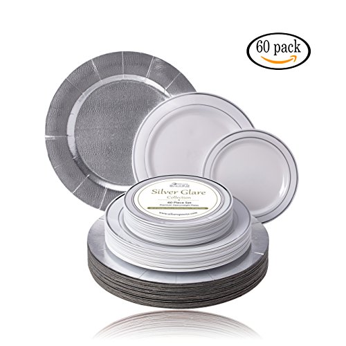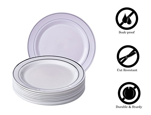 Product Description Family get-togethers have never been easier with Silver Spoons Silver Glare Collection Classic dinnerware set. From From backyard barbecues to Thanksgiving dinner, these white with gold border round plates serve all your tableware needs. Your guests won't believe these plates are made of plastic.