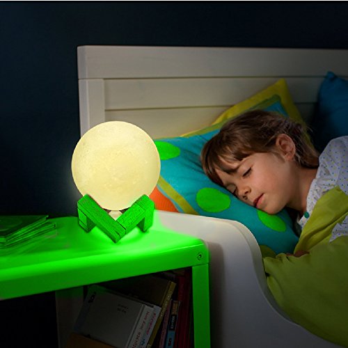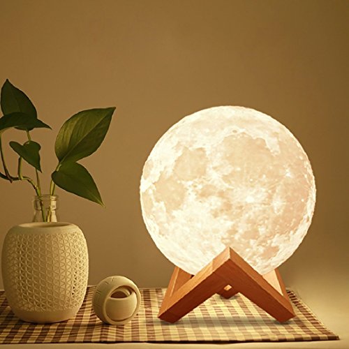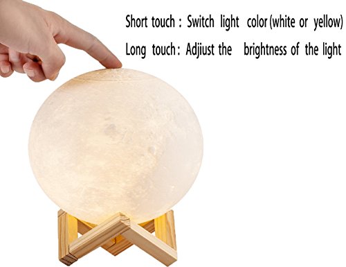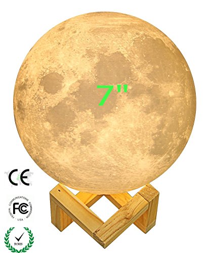 Extra Large Moon Lamp ! Authentic 7 Inch 3D Printed Moon Light, Light Lamp Moon, Touch Control, USB Recharge , PLA Material, Warm White & Warm Yellow. (7in)