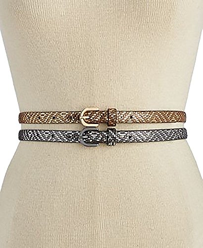 (INC International Concepts)/Accessories/Belts Buckles/DIRECT FROM USA/INC International Concepts Metallic Texture 2 for 1 Skinny Belts