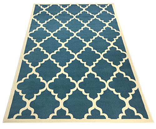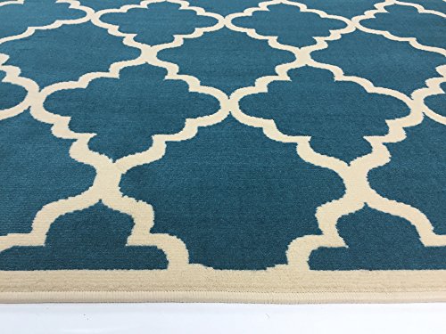 Contemporary modern design: Trellis , color: Petrol blue/cream , setting: Indoor