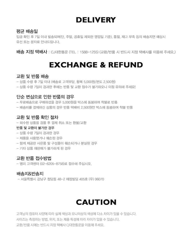 특이 사항 배송, 변경, 반품 환불에 대한 문의는 위 연락처로 문의 주세요.