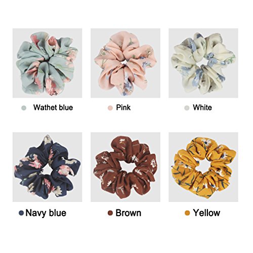 Ondder Large Chiffon Flower Hair Scrunchies Hair Bow Chiffon Ponytail Holder Bobbles Elastic Colorful Scrunchy Hair Bands Ties, 6 Pieces