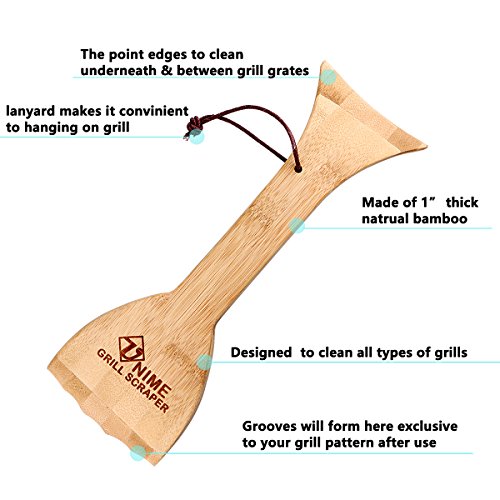 Unime Grill Scraper, Safer Wood BBQ Grill Cleaner, All Natural Bamboo Bristle Free Replacement To Wire Bristle Brushes, Cleans Top and Bwtween barbecue grates