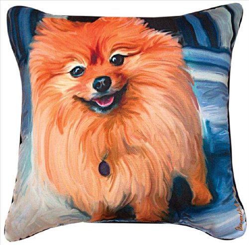 Manual Blue Pom Pomeranian Paws and Whiskers Decorative Square Pillow, 18-Inch
