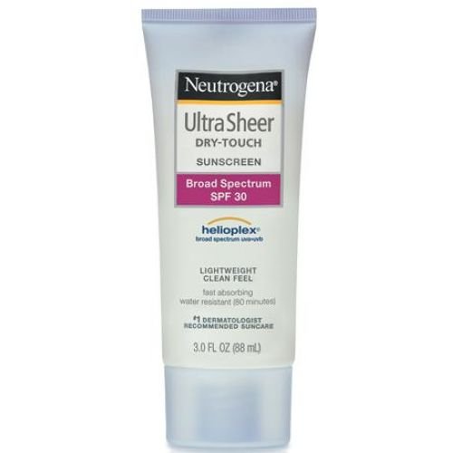 Ultra Sheer Dry Touch Broad Spectrum SPF 30 Sunblock Lotion, 3 Fluid Ounce -- 12 per case. Neutrogena Ultra Sheer Dry Touch Sunscreen SPF 30 feels like you have nothing on, but offers broad spectrum protection to help prevent sun damage. This formula uses Avobenzone to provide advanced protection against damaging UVA and UVB rays, along with Dry Touch technology for an ultra light, non shiny finish. Fast absorbing, water resistant and a non oily formula. Heavy sun protection never felt this light on your skin. This product features Helioplex , a breadth of stabilized sunscreen technologies that delivers superior protection from the sun. Broad Spectrum UVA/UVB Water resistant (80min) Non comedogenic (wont clog pores) PABA freeFeature
