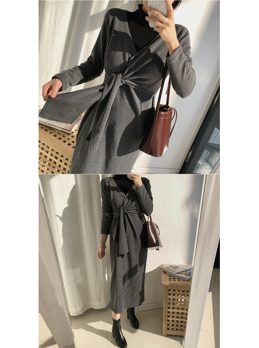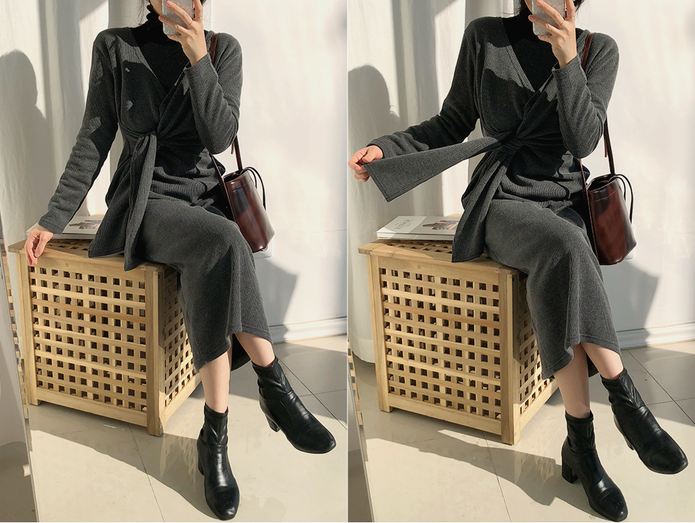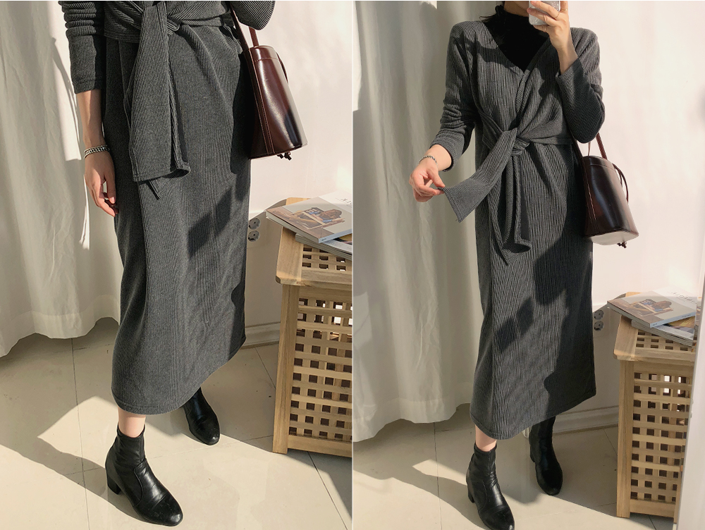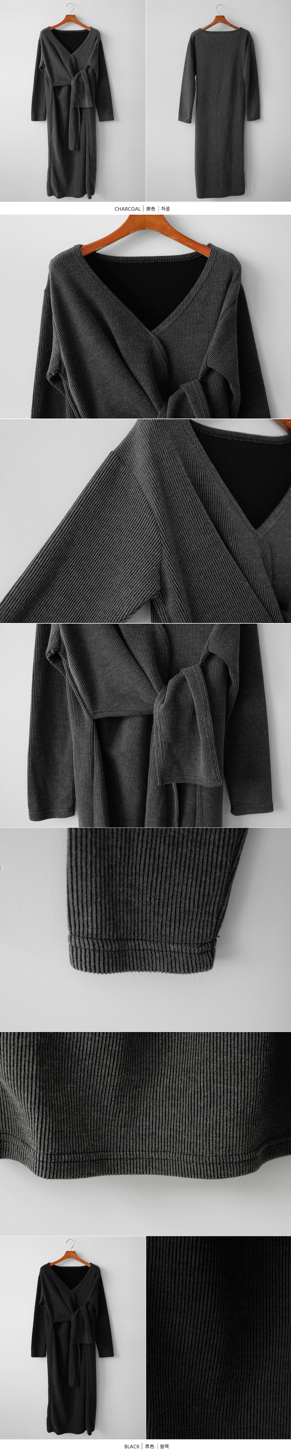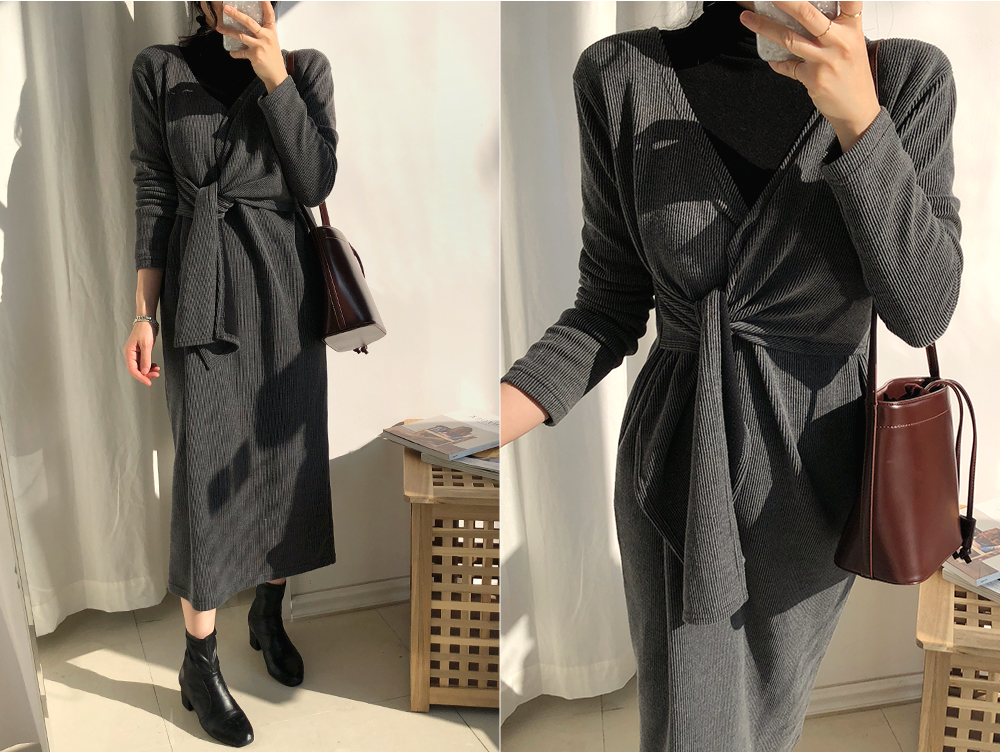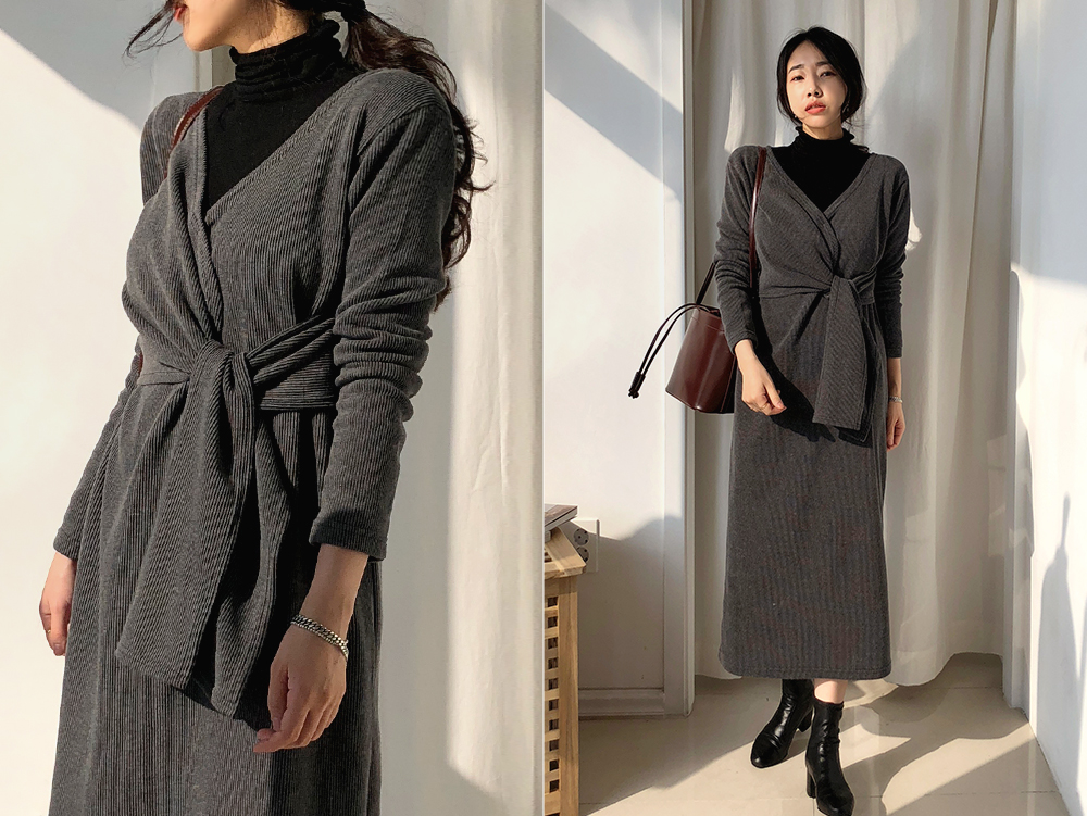 골지 클래식 스트랩 롱 니트 원피스