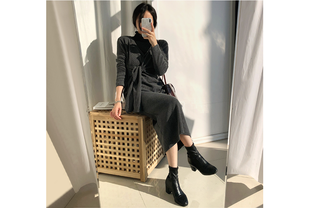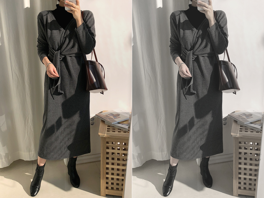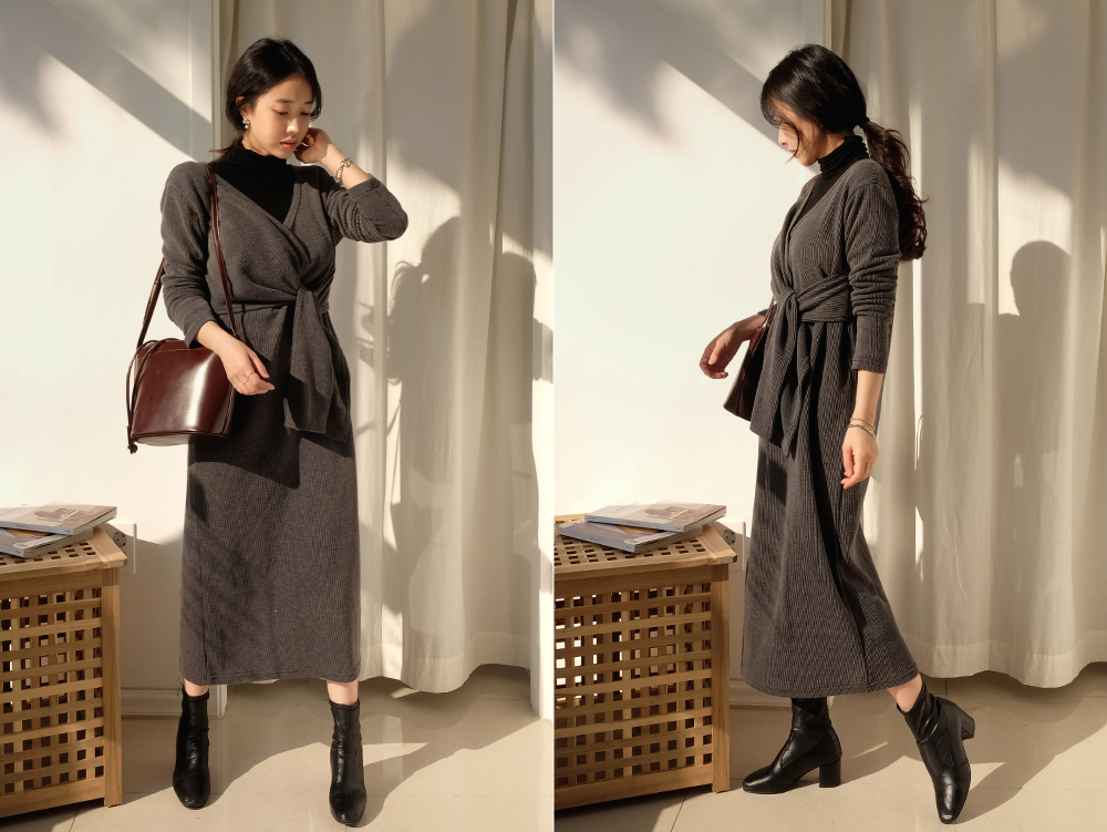 도톰한 골지 원단에 부드럽고 신축성 좋은 원피스구요.