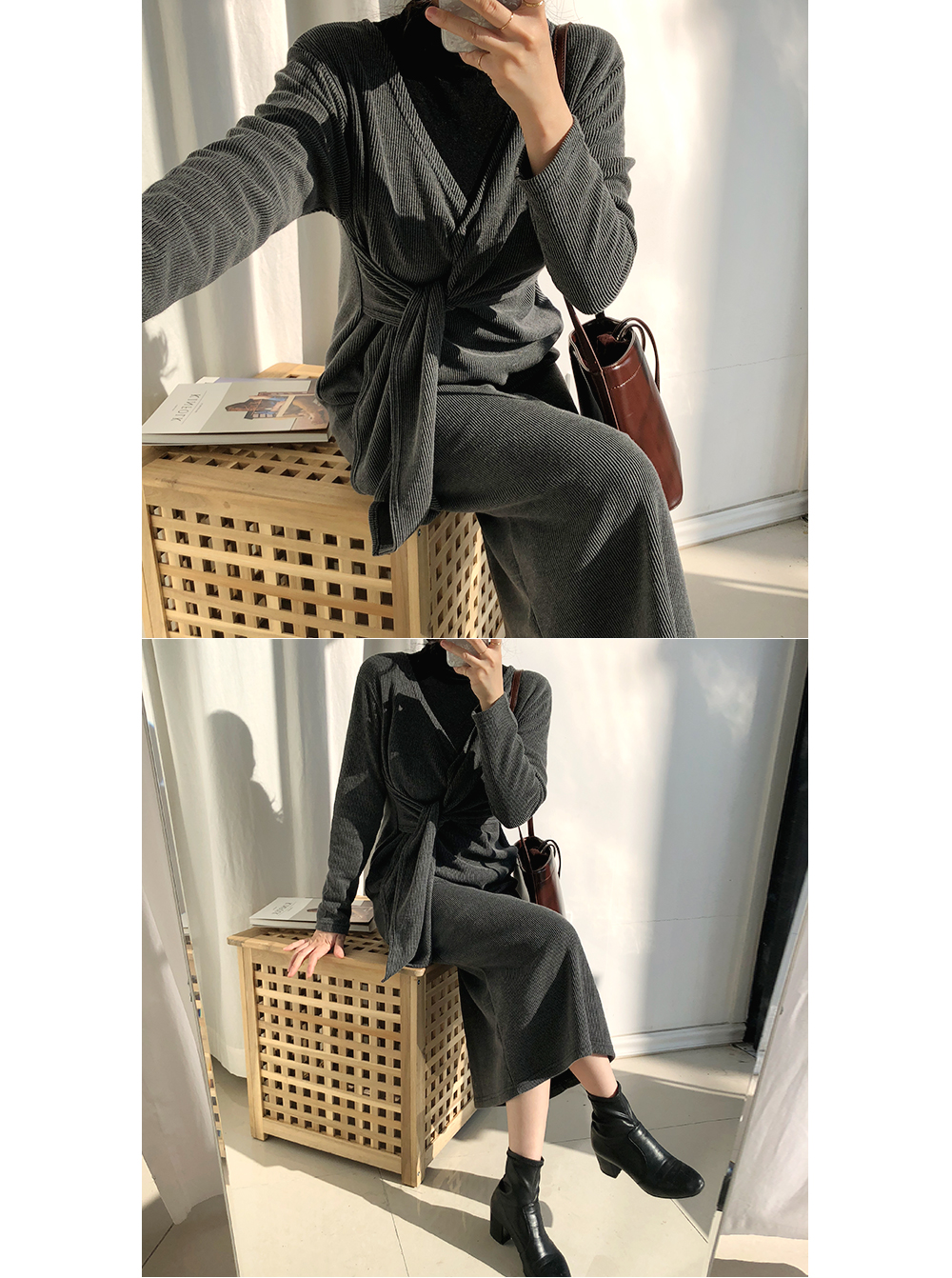 트랜치코트나 롱가디건과 함께 매치하여 입어주시면