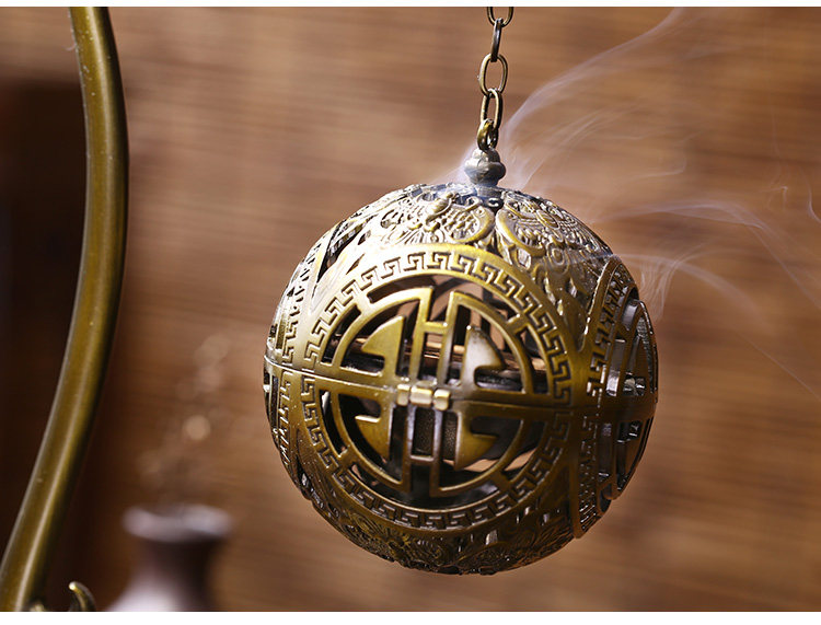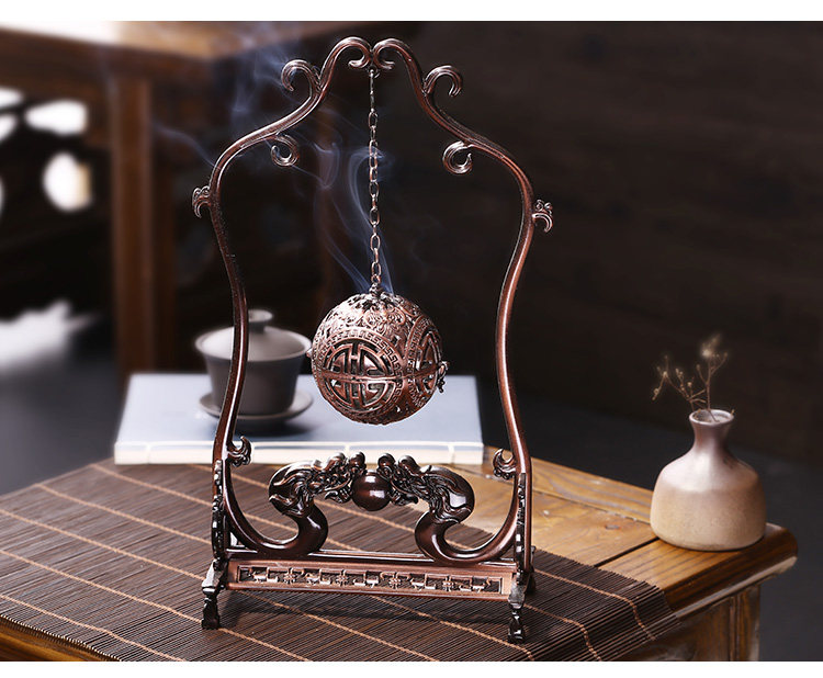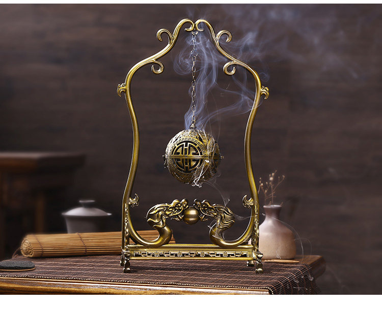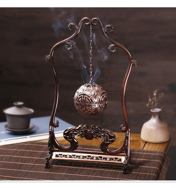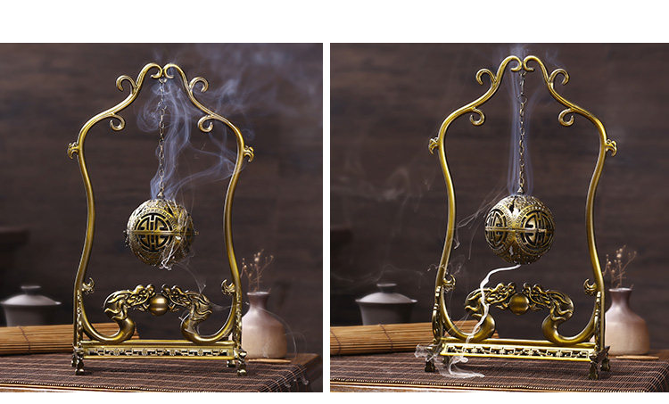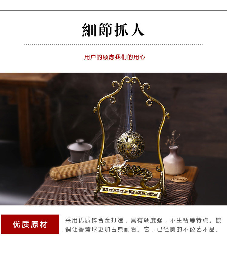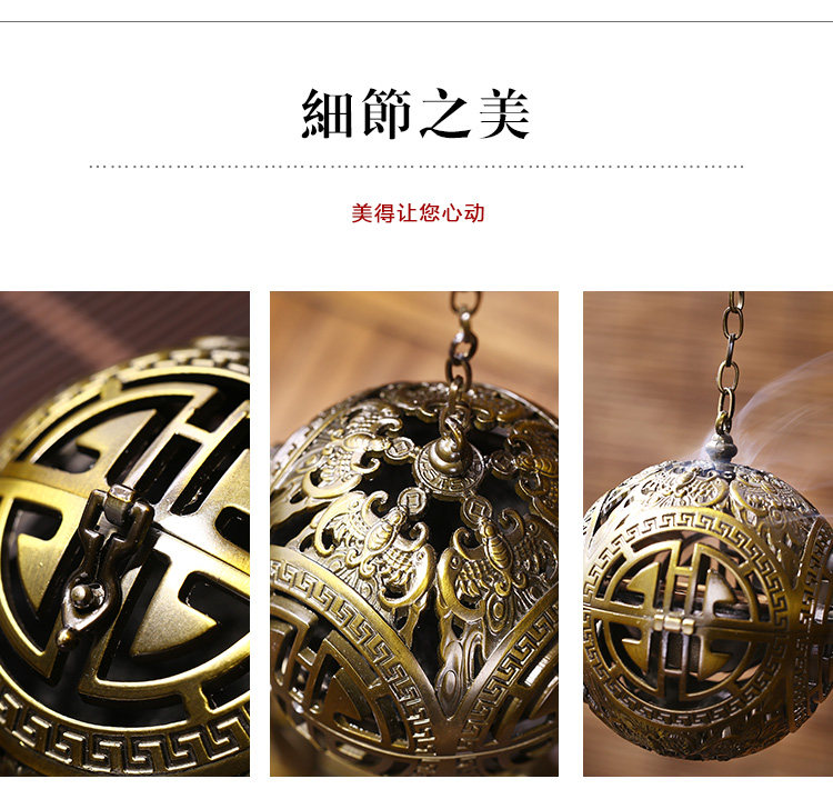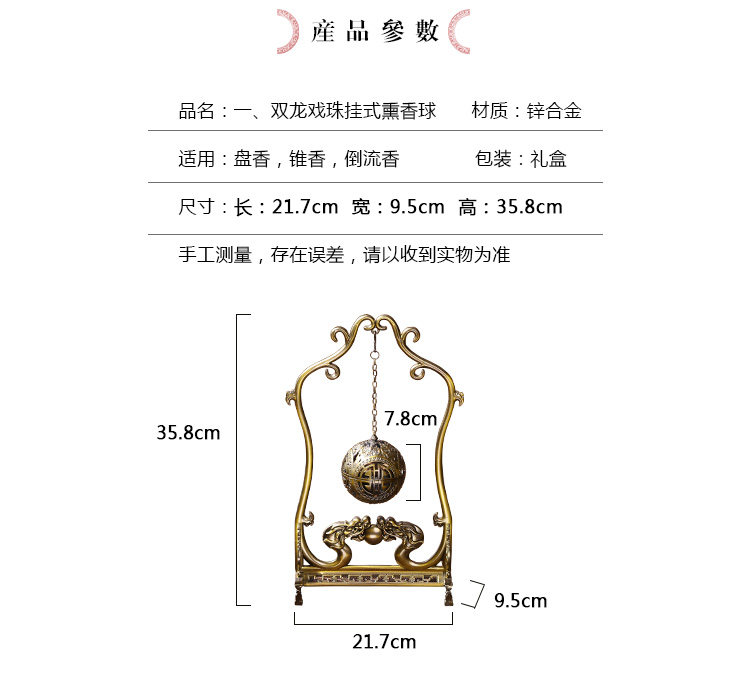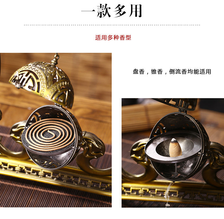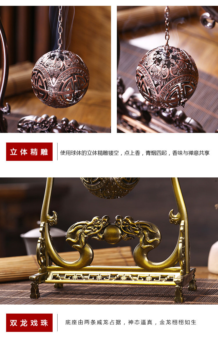 德香缘创意仿古镂空双龙戏珠大号倒流香炉香熏球薰炉盘香家用摆件