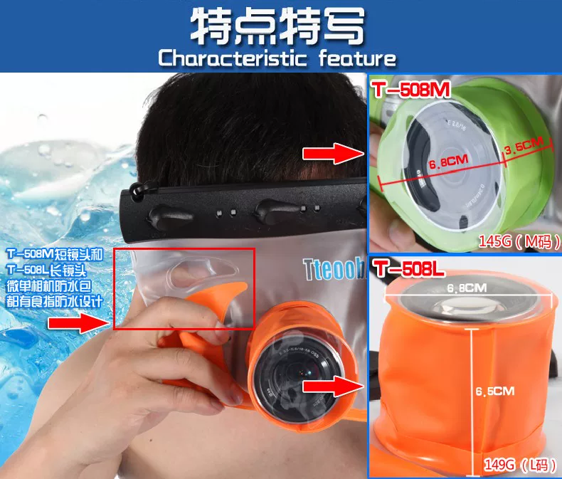 Tteoobl/特比乐T-508M/20米通用微单相机防水袋潜水游泳水下拍   Tteoobl/特比乐T-508M/20米通用微单相机防水袋潜水游泳水下拍
