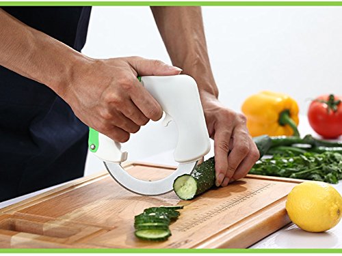 EASY TO USE: An Ergonomic designed handle allows for a comfortable and firm grip with sharp blades make cutting through effortless and minimizes wastage. Simply Just roll back and forth you can get a good cut of food. Use the tools to significantly reduce time to slice & cut.