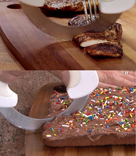 MULTI-PURPOSE USE: Rolling Knife is used to cut a variety of foods in short time such as pizza, vegetables, cake and beef. You should use a wooden cutting board underneath to make the blades more durable and to protect your kitchen worktop